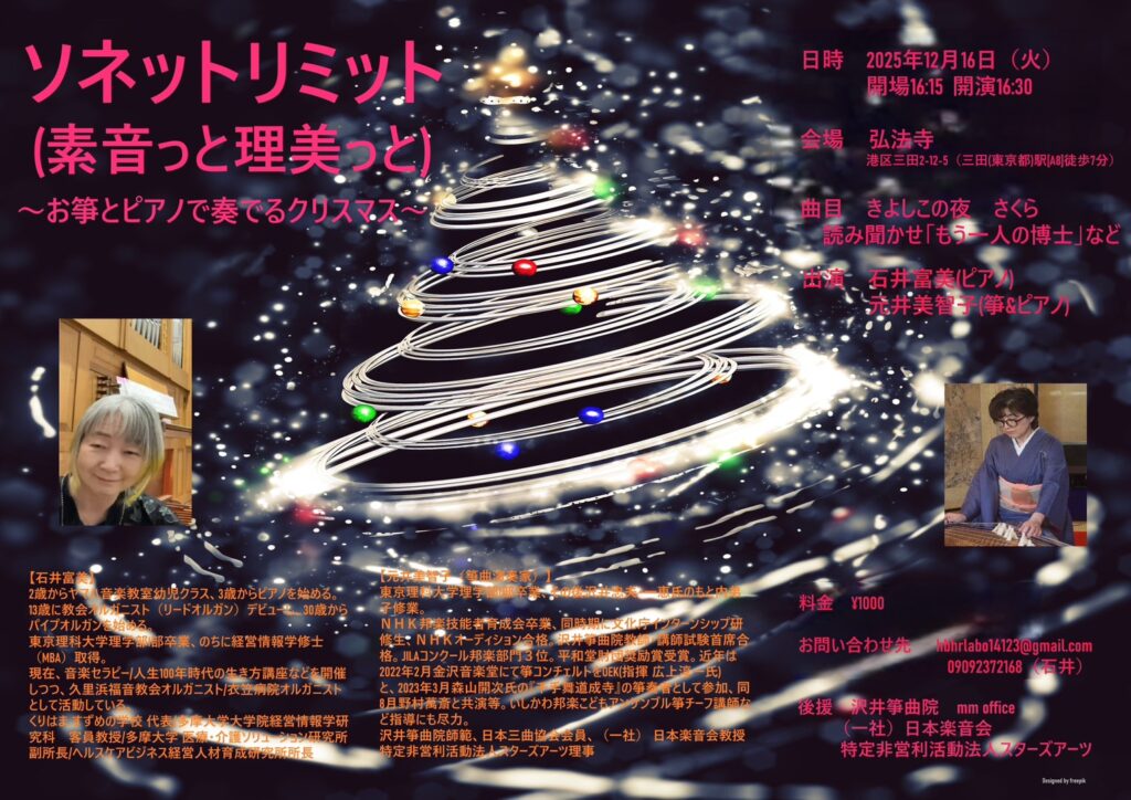 【演奏会情報】12月16日(火) ソネットリミット (素音っと理美っと)