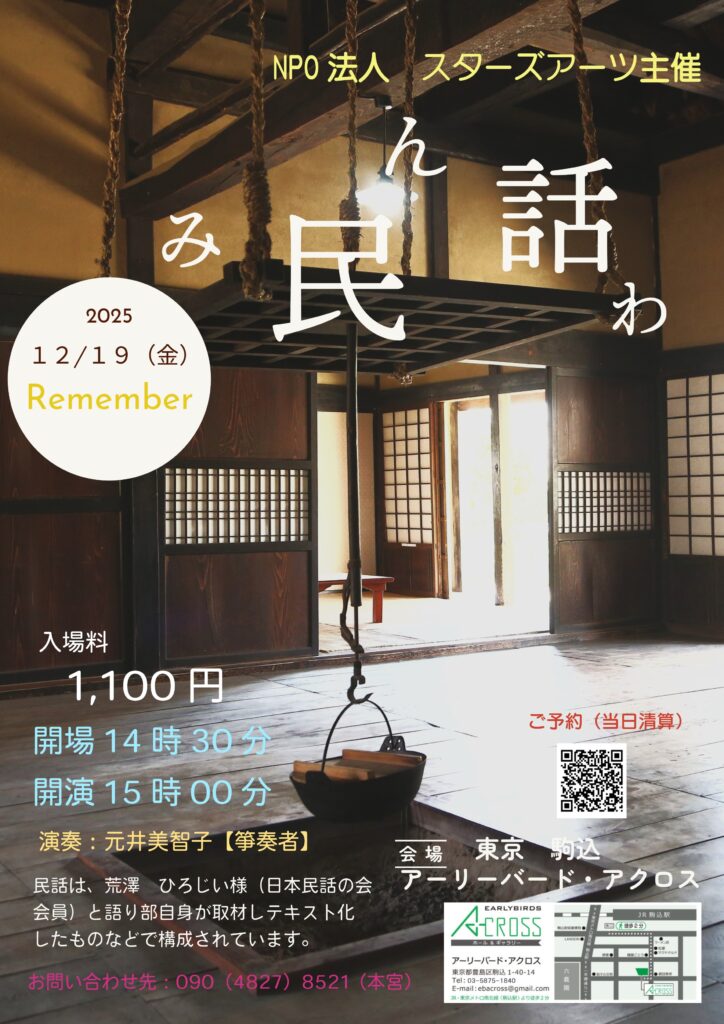 【演奏会情報】12月19日(金) Remember ~明日への希望~(生演奏で民話を語る)