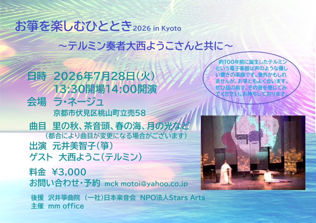 【演奏会情報】7月28日(火)お箏を楽しむひととき2026 in Kyoto